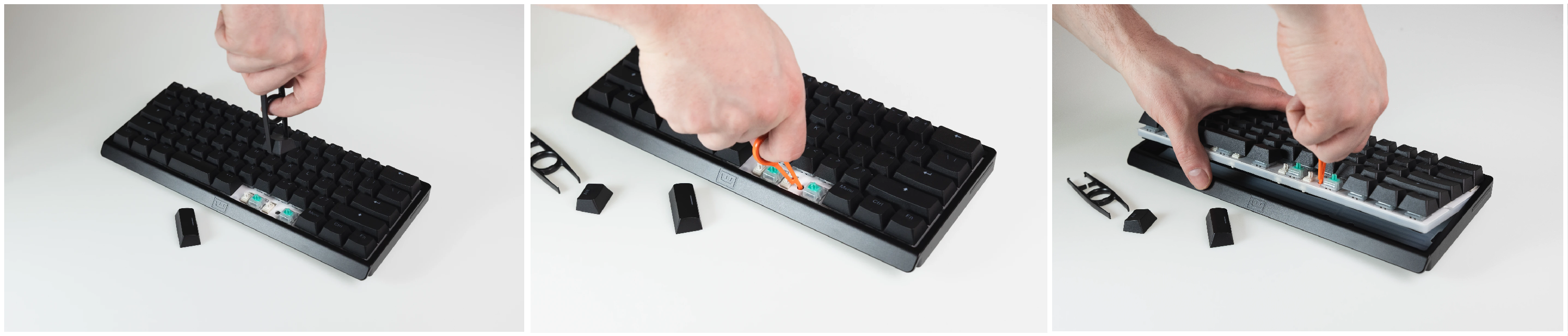 - Removing the keycaps With a keycap puller or other tool Remove the spacebar and right-alt keycaps (use the right-spacebar if you’re on a split layout).