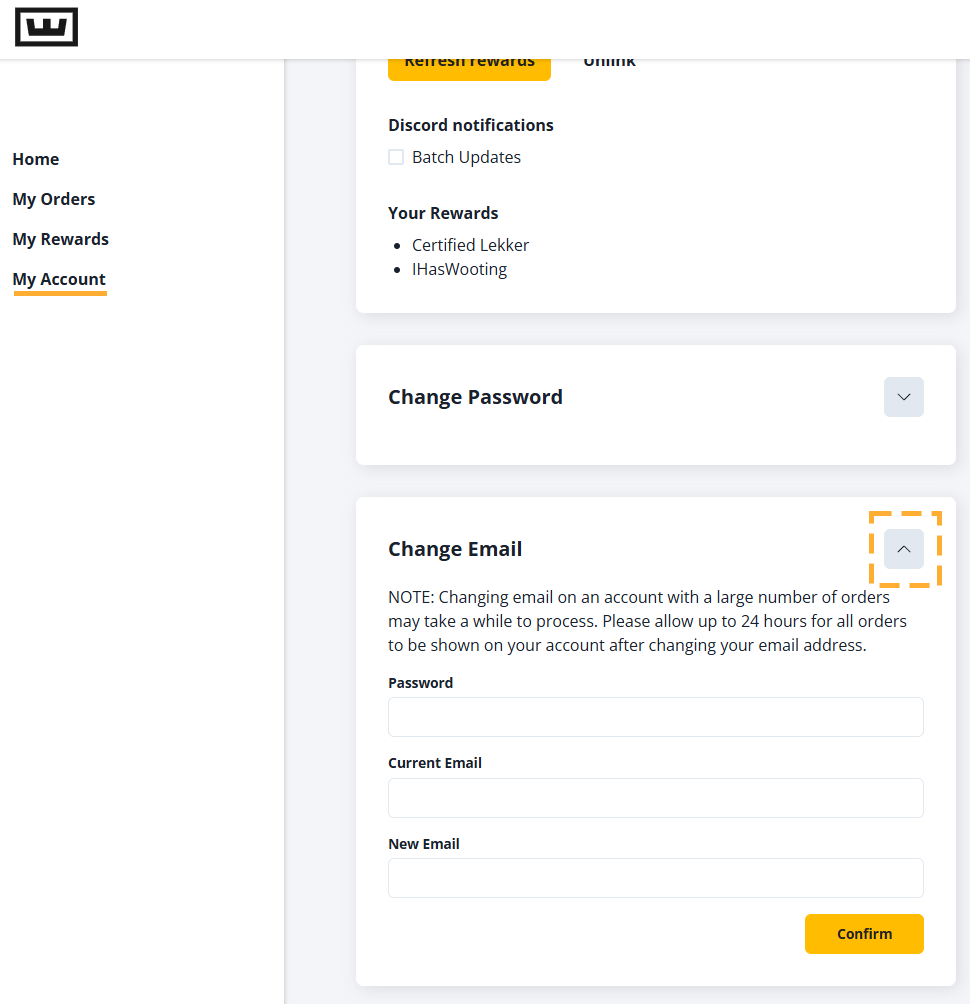 Tip: For quickest processing by customer service, please use the email address currently associated with the order.